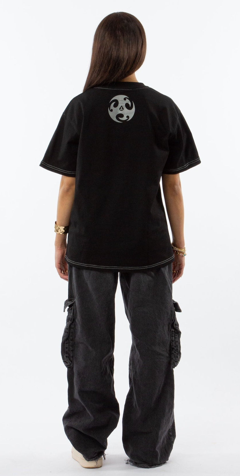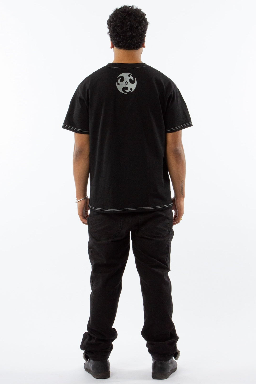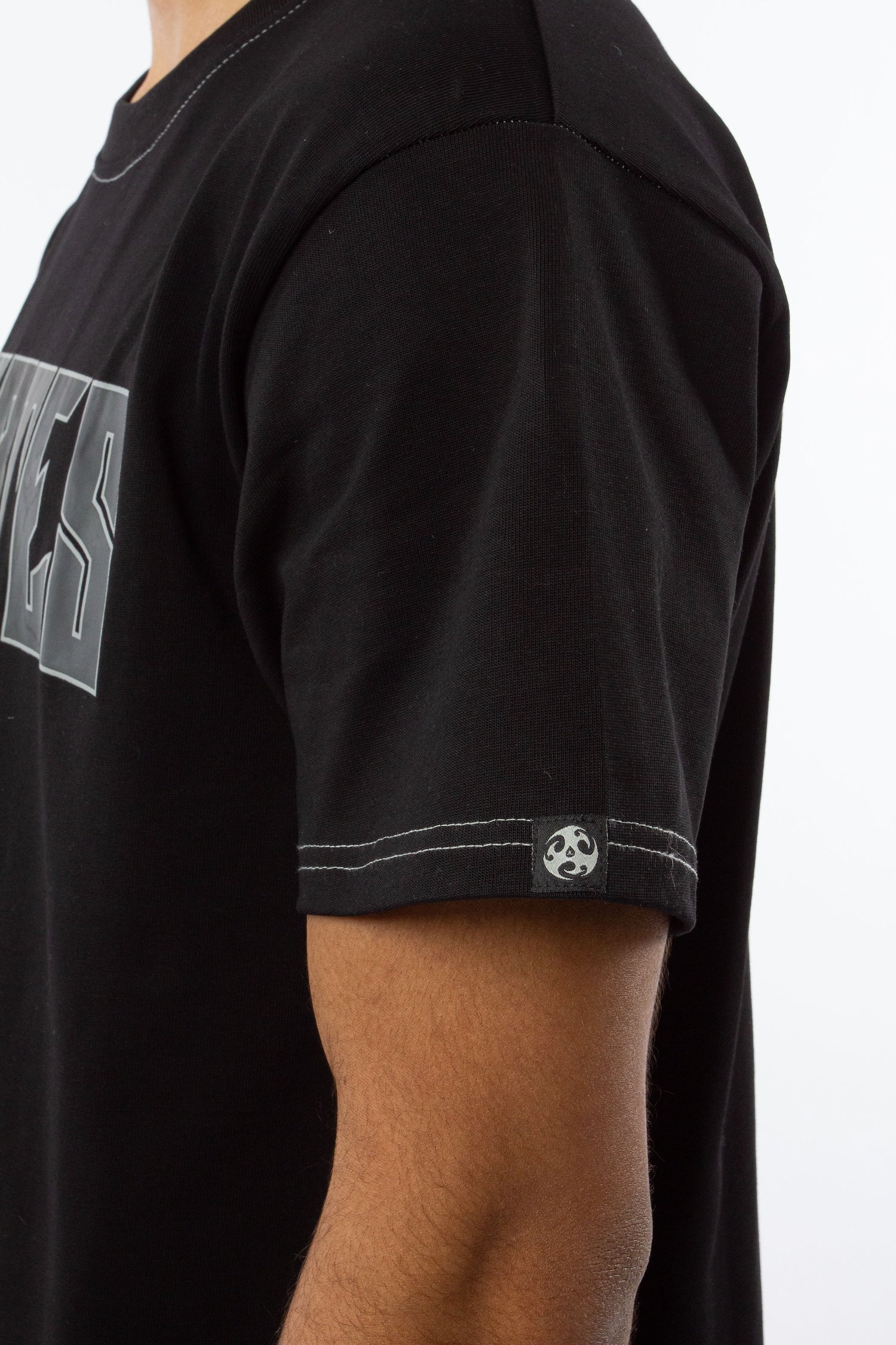 BLACK HEAVYWEIGHT T-SHIRT WITH GRAY CONTRAST STITCHING.